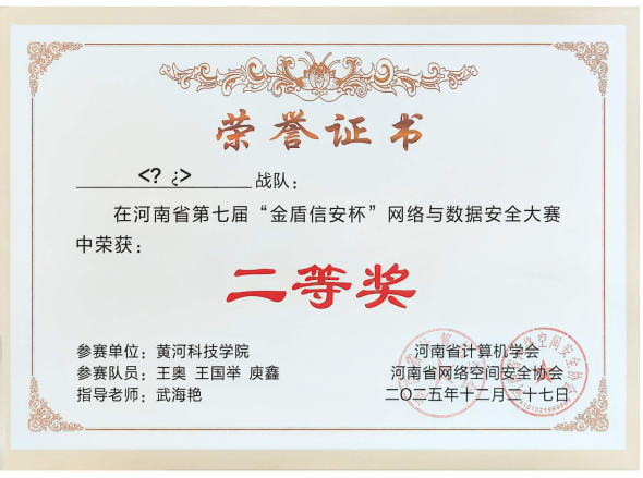 本届大赛由河南省计算机学会、河南省网络空间安全协会主办,河南省网络安全高校战队联盟、河南金盾信安检测评估中心有限公司联合承办。本次大赛为线上挑战赛,比赛题目类型包括理论题、CTF赛题,队伍总成绩为理论题得分+CTF 赛题得分,采取线上闯关模式。该赛事于2025年12月27日9:00至17:00举行,吸引了众多高校学子参与角逐。